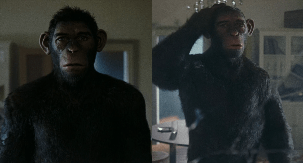 Transformative, isn’t it? The slightly scruffy ape person, is now slightly less scruffy. Why even have that scene?